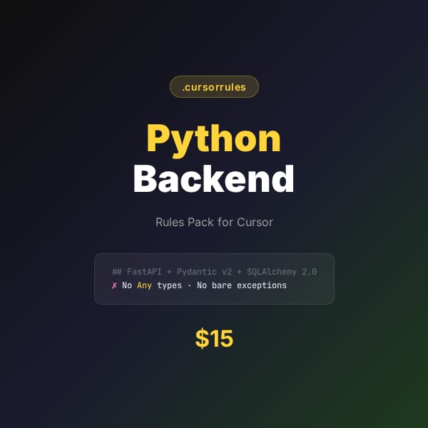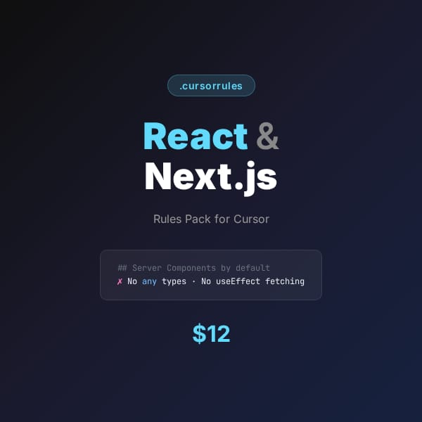 Every paid .cursorrules pack in one download. React/Next.js, TypeScript Strict, Python Backend, and Debugging — all tested, all production-ready. Save 40% vs buying individually.